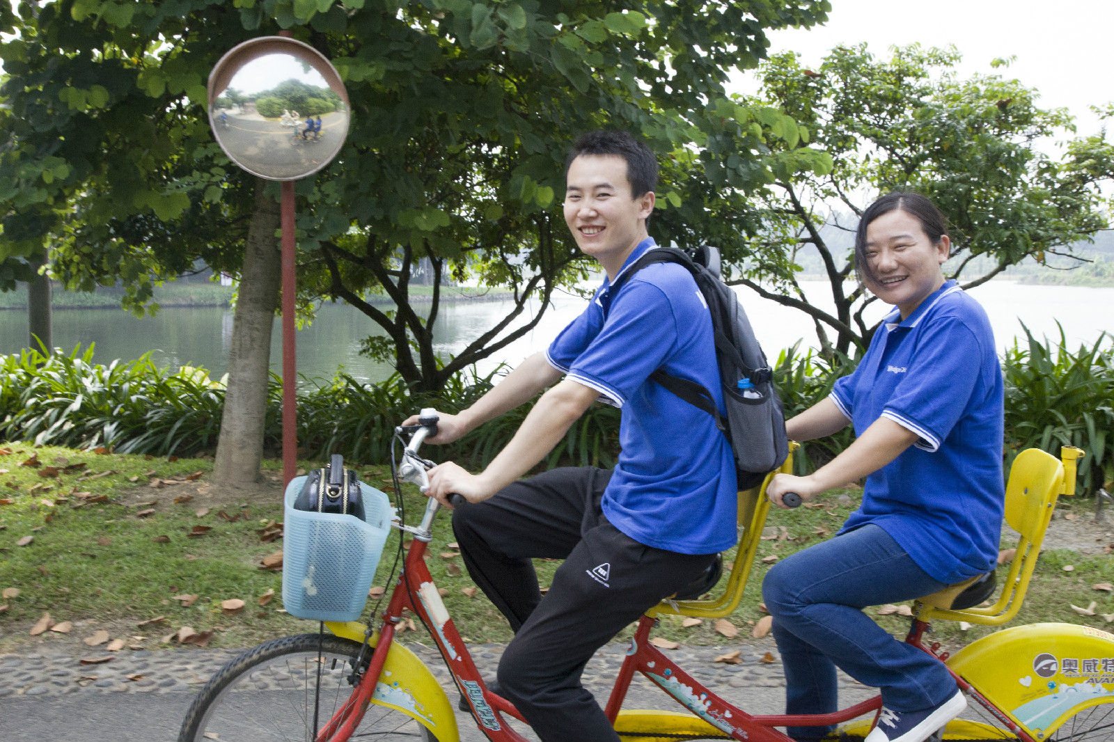 活动期间,教练还将所有队员男女搭配,开展了“双人单车”骑行活动,使每位队员在充分感受沿途的风景的同时,增进彼此之间的交流与友谊。此次活动的每一个环节均是在松山湖不同的景区展开,参加活动的青年会员们一路上边走边玩,斗智斗勇,有欢笑,有喜悦,有汗水......每个人都深刻感受到“责任、协作、自信”的含义。通过此次活动,让员工在繁忙的工作之余,亲近大自然,感受青山绿水,放飞心灵,提高工作效率,增强青年会员的向心力和凝聚力,充分展现了万泽工会青年会员的青春活力与风采。